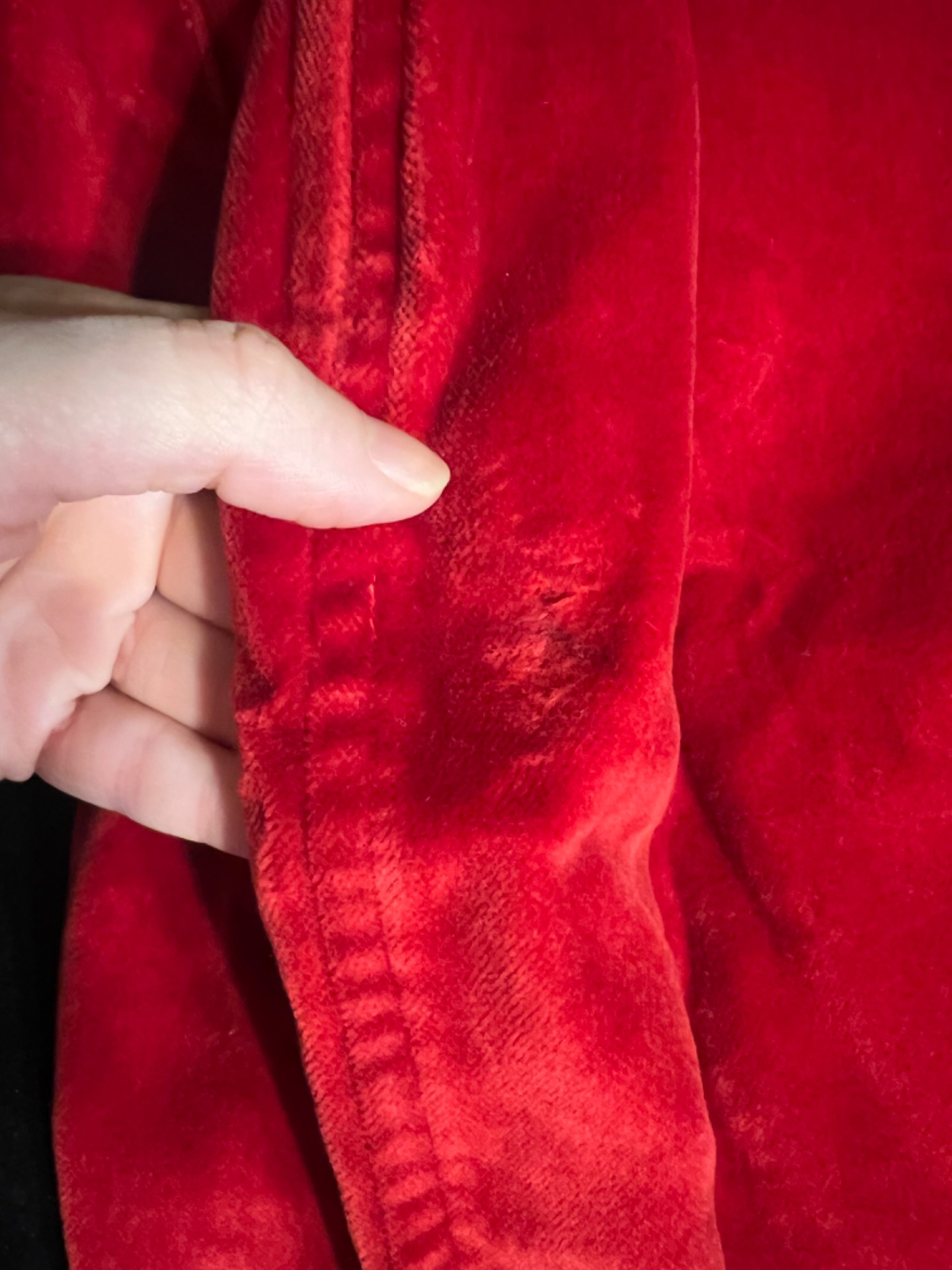 Vintage sukně s červeného silného sametu. Sedne pěkně do pasu, má zapínání vzadu na zip. Elegantní střih bez kapes a založený detail.