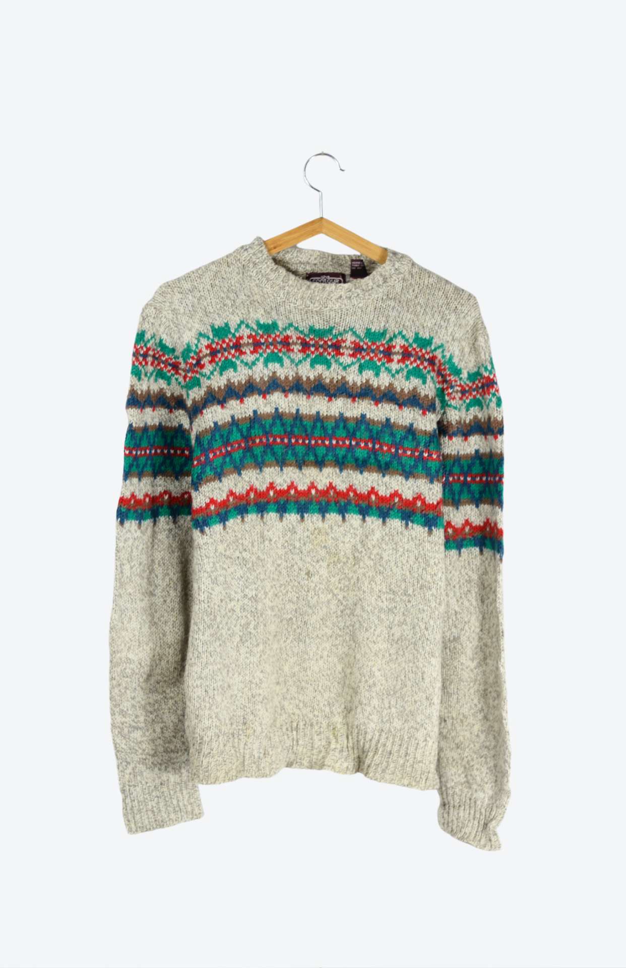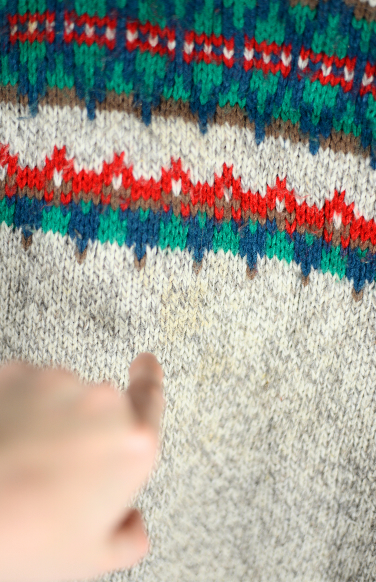 Vintage šedý svetr se vzorovaným pruhem. Středně silný úplet a rovný střih. Pánský / unisex kousek.