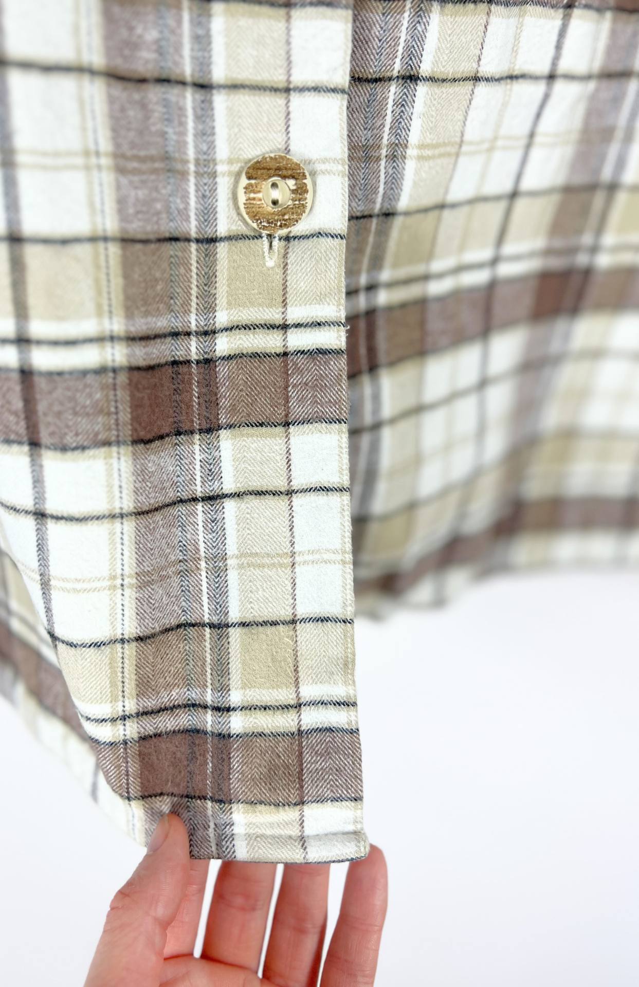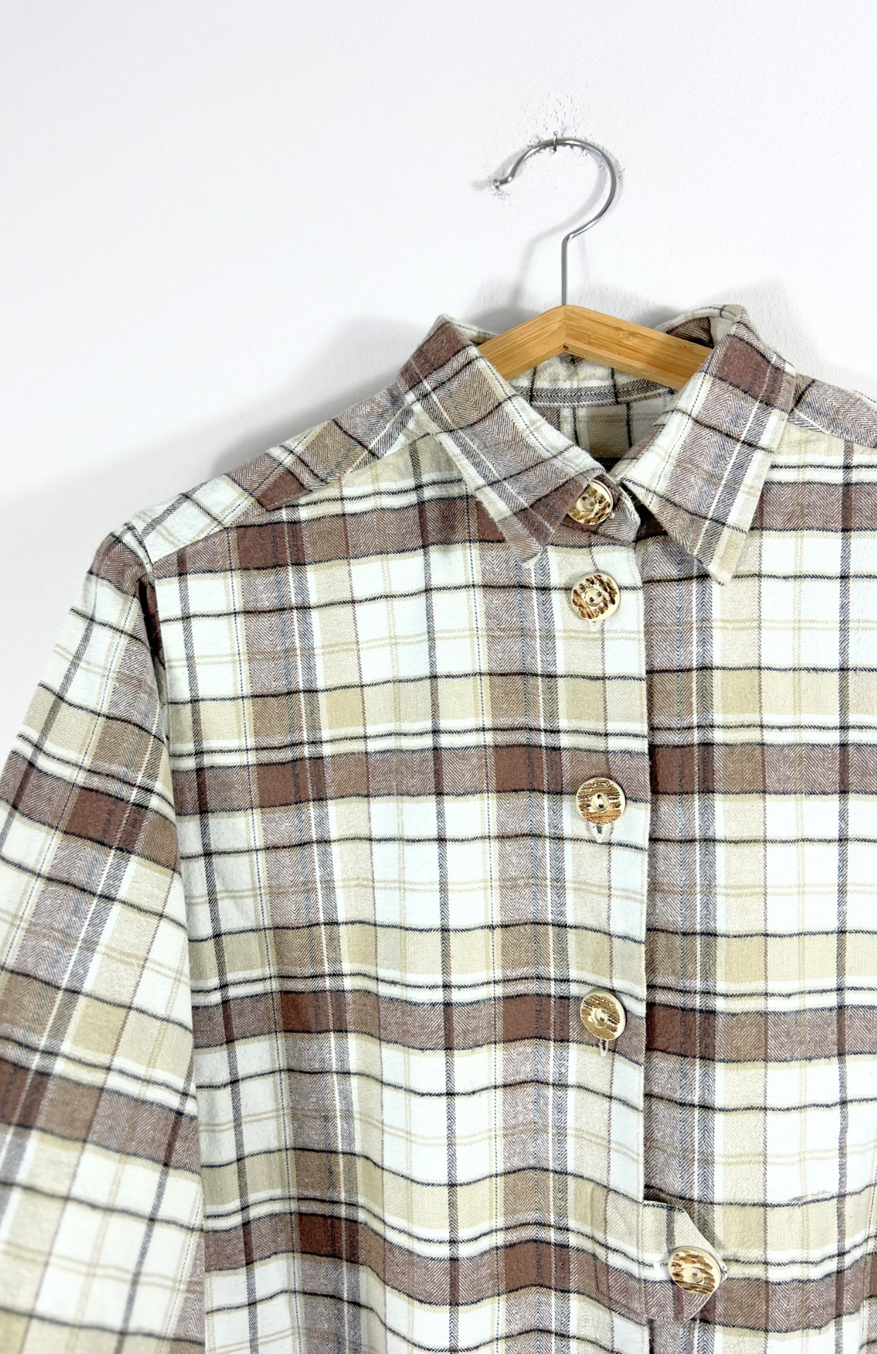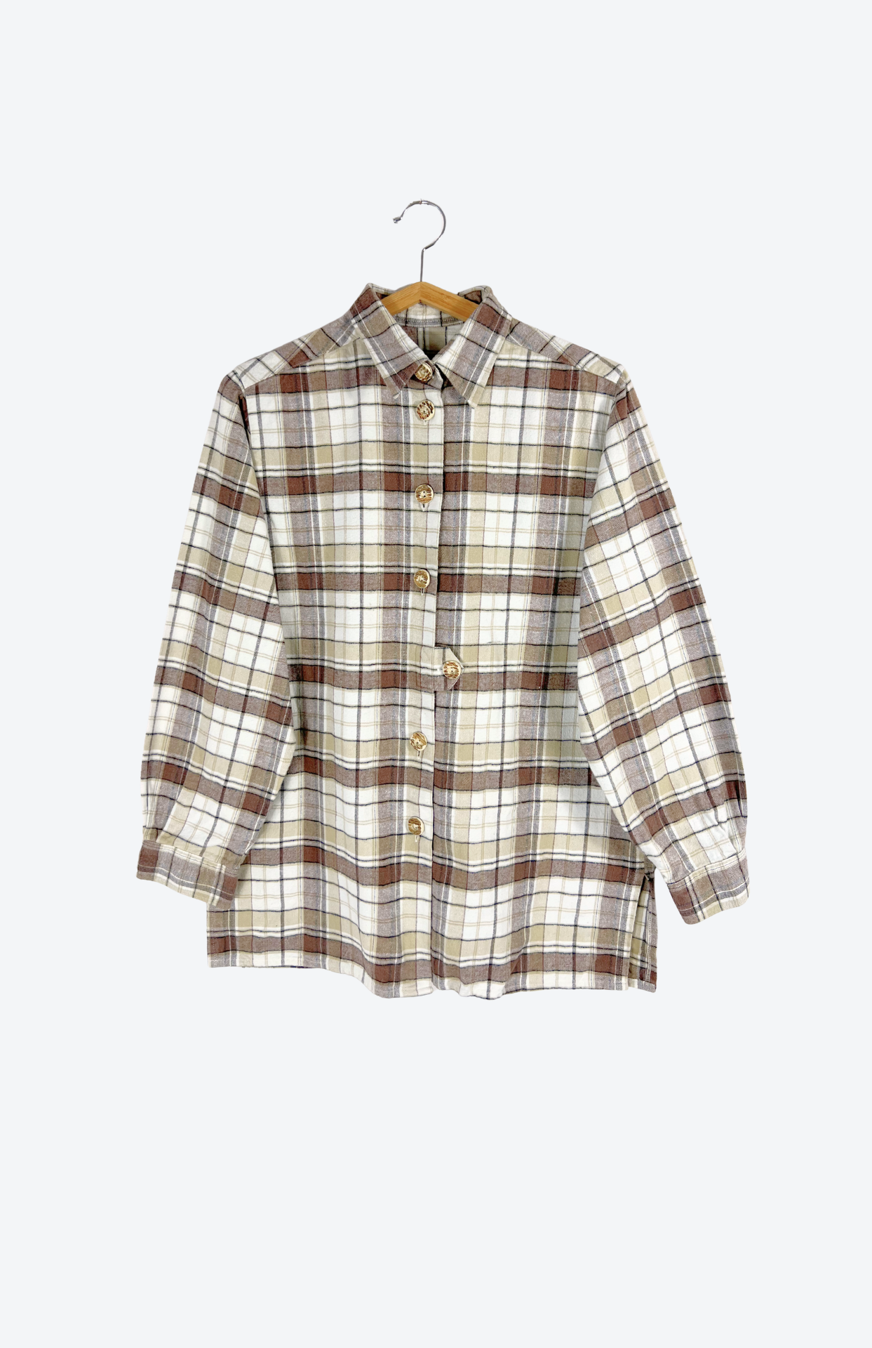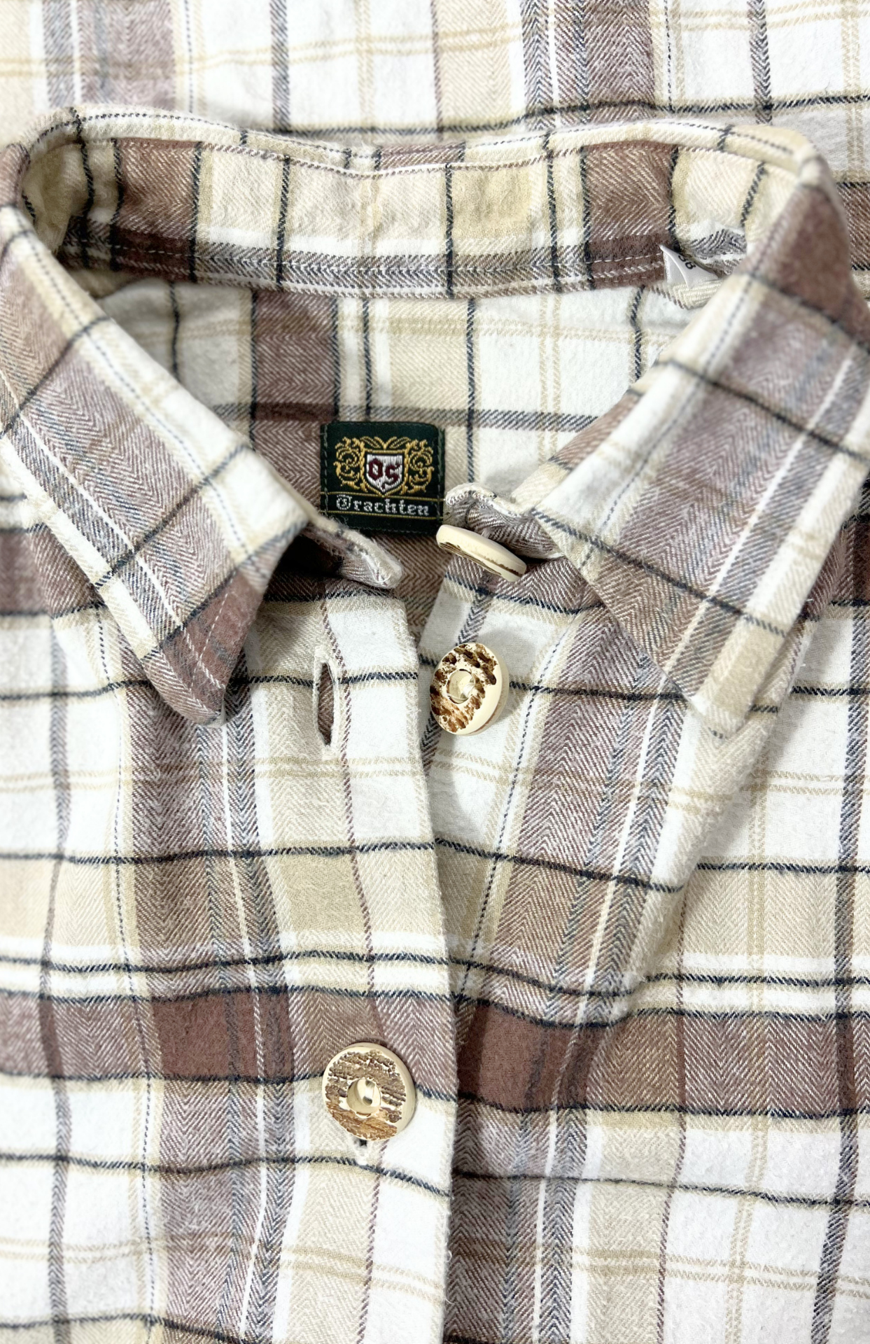 Trachtová silná vintage košile. Má béžovo hnědou kostku a rustikální knoflíčky. Příjemný, flanelový materiál.