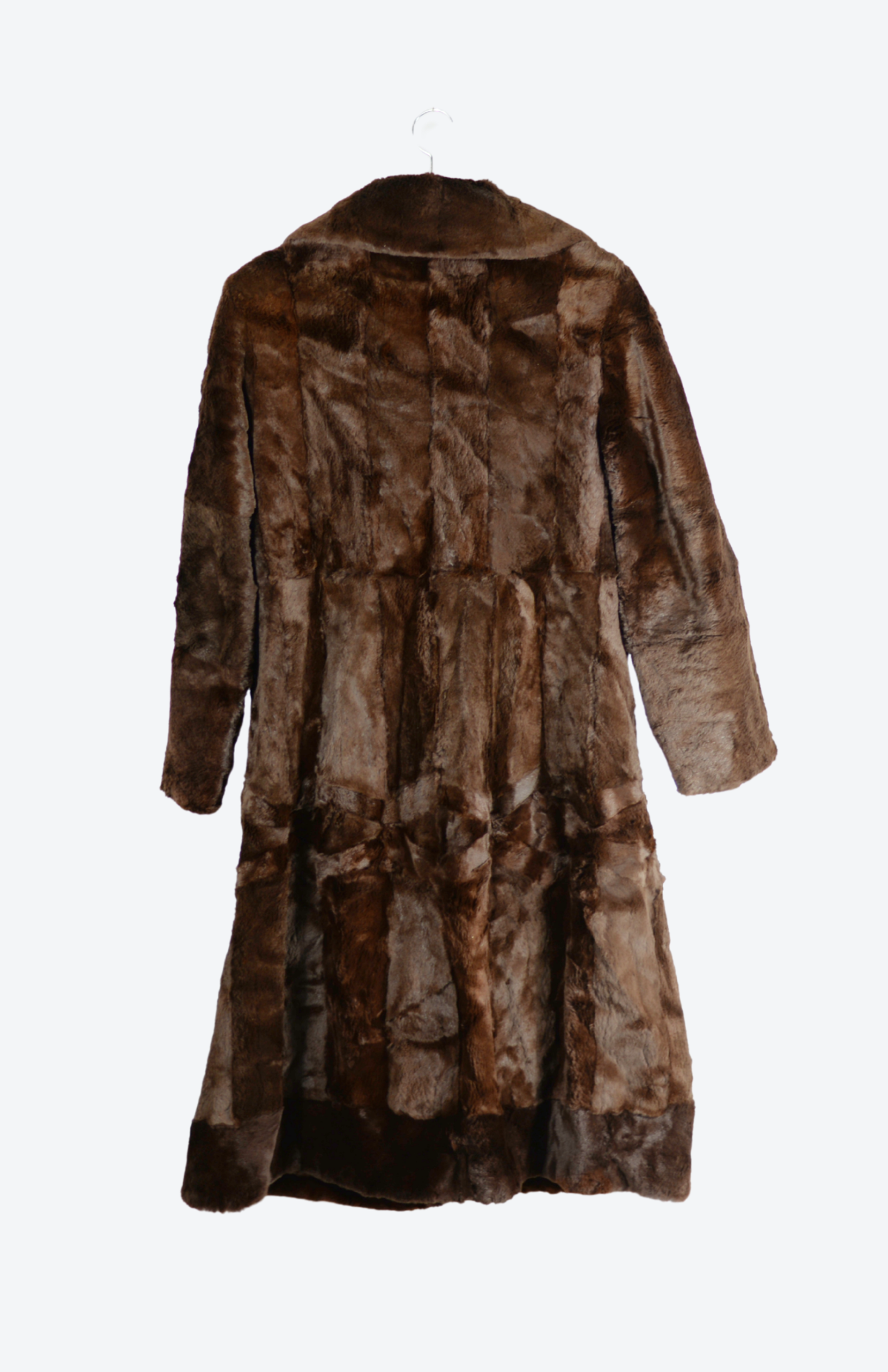 Dlouhý vintage kabát z pravé norkové kožešiny. Má límec u krku a zapínání na průvlekové skryté háčky. Po stranách kapsy. Uvnitř saténová podšívka i pásek pro zvýraznění pasu. Velmi pěkně zpracovaný kousek.