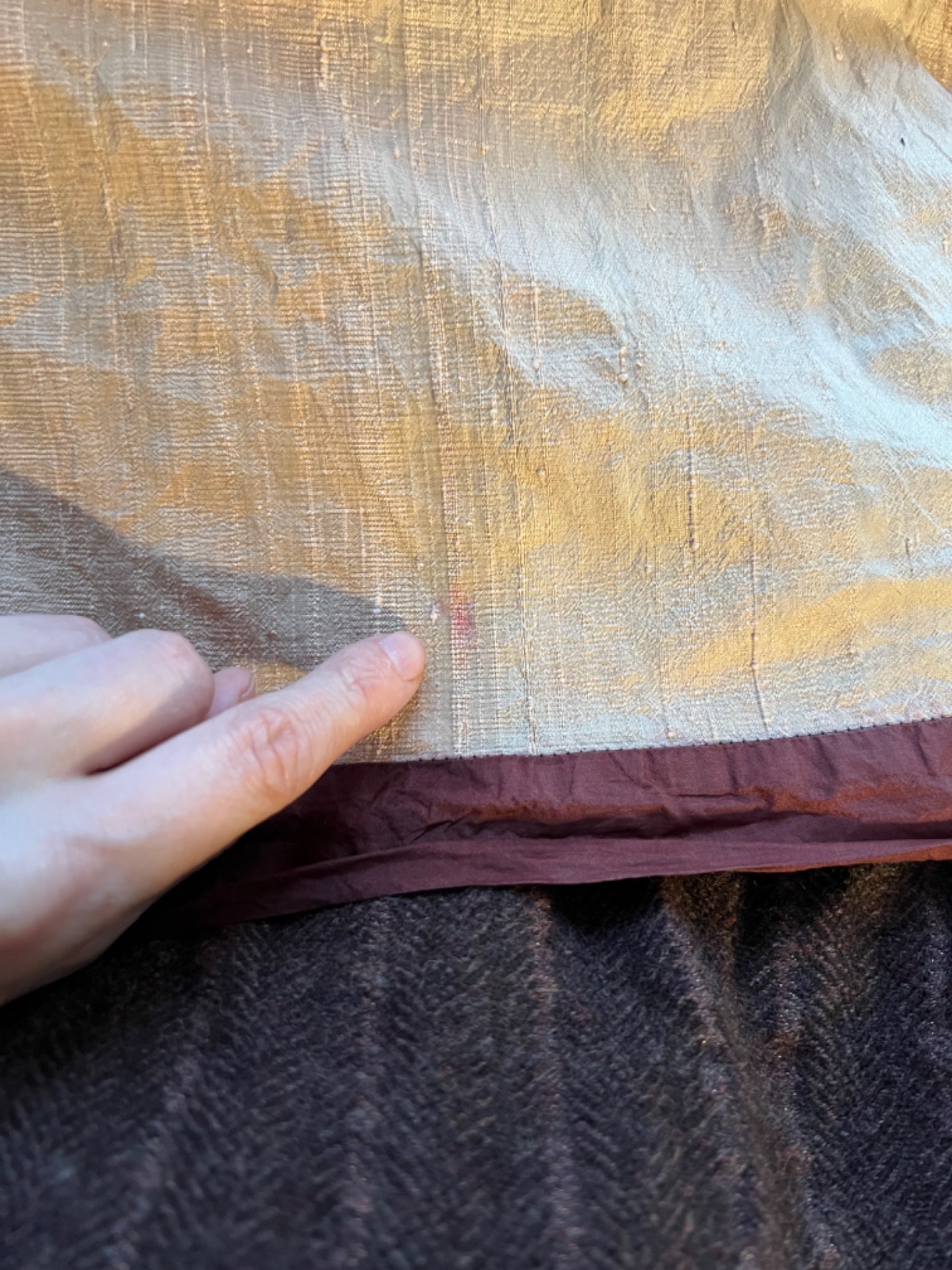 Stav: Vintage kousek ve skvělém stavu, pouze drobný červený flíček u spodního lemu.