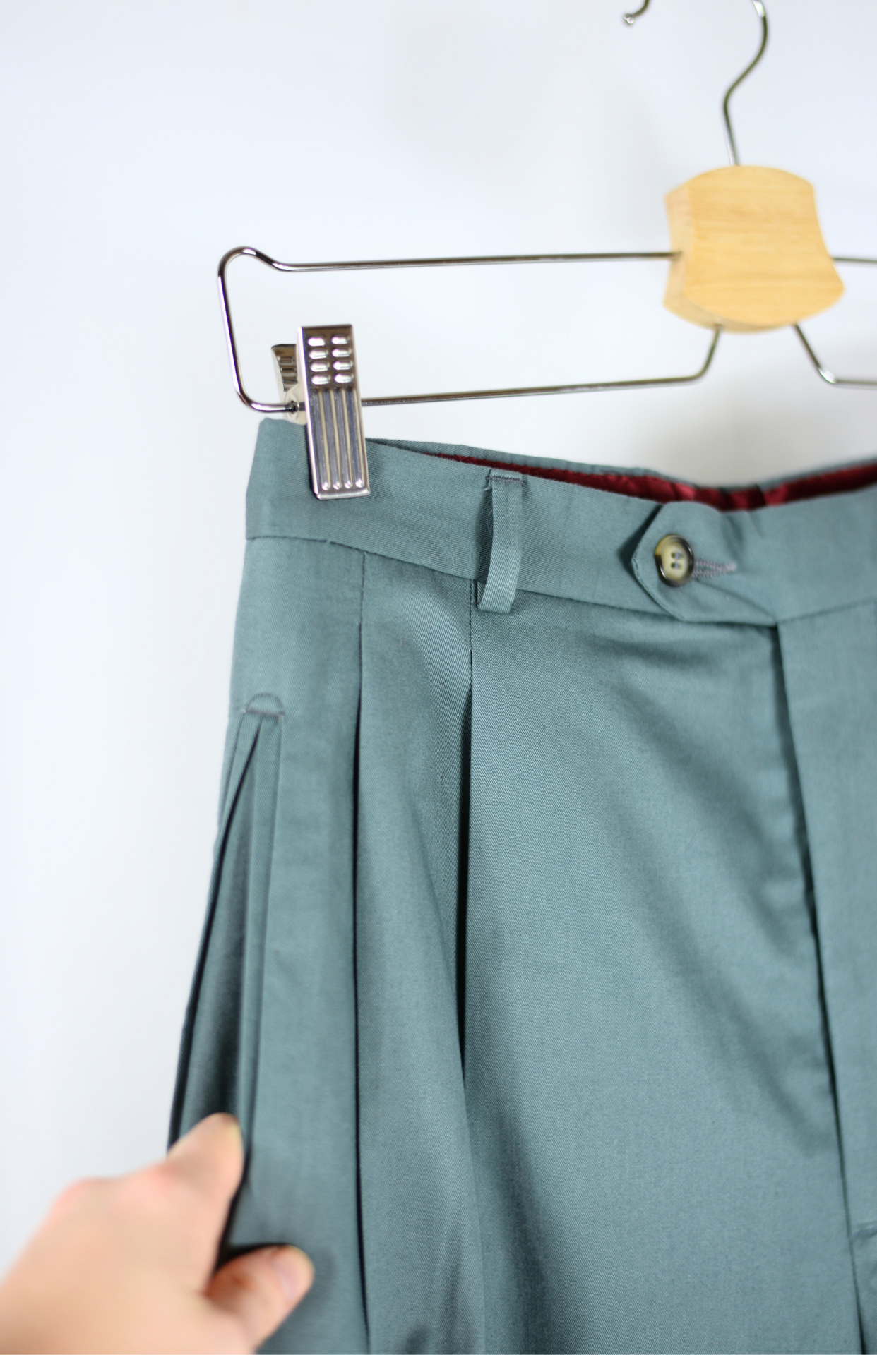 Vintage elegantní šedomodré kalhoty do pasu M/L