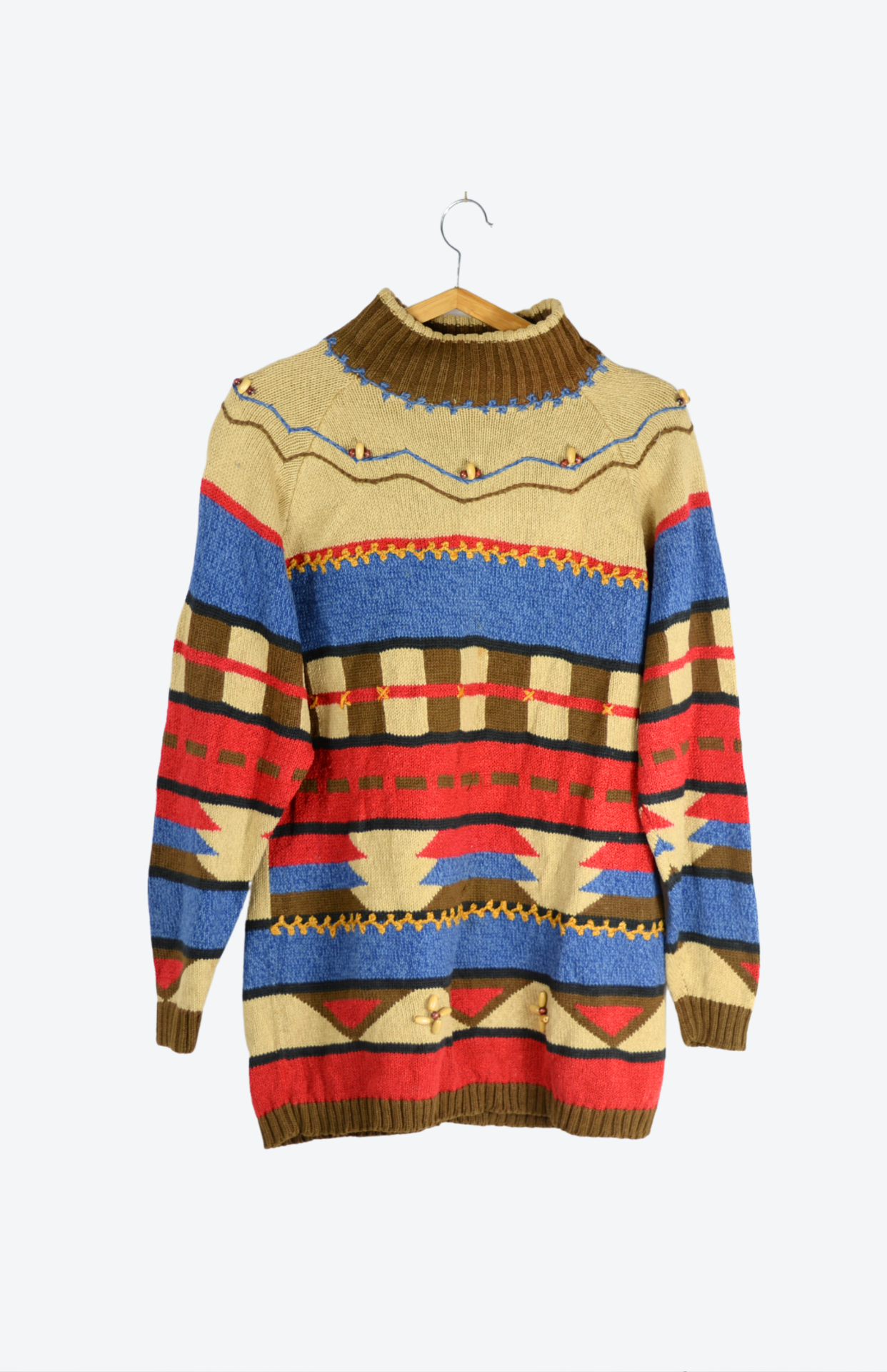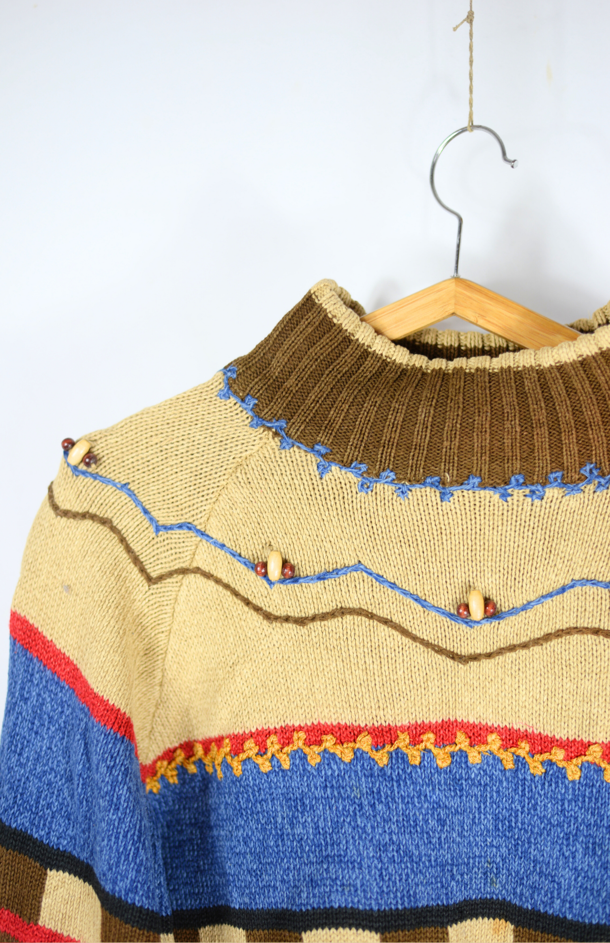 Vintage funky barevný roláček. Silný a z přírodního úpletu. Má drobné dřevěné korálky.Stav: Vintage kousek v perfektním stavu, pouze vpředu má flíček.