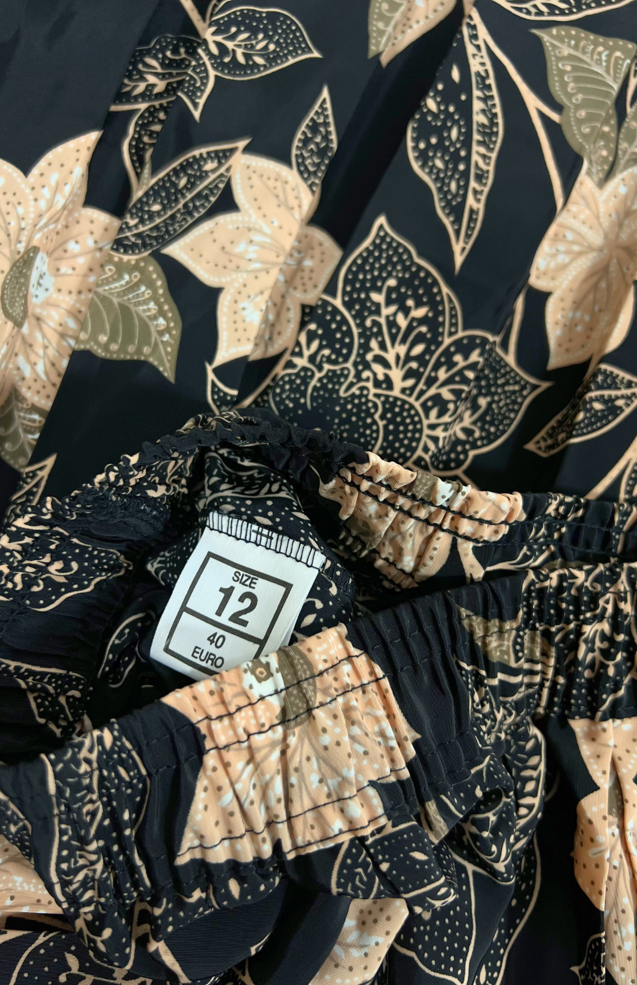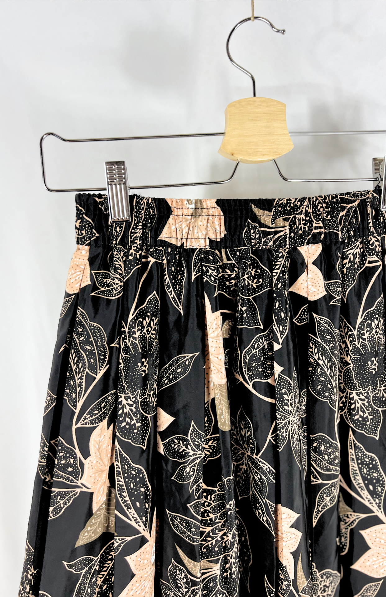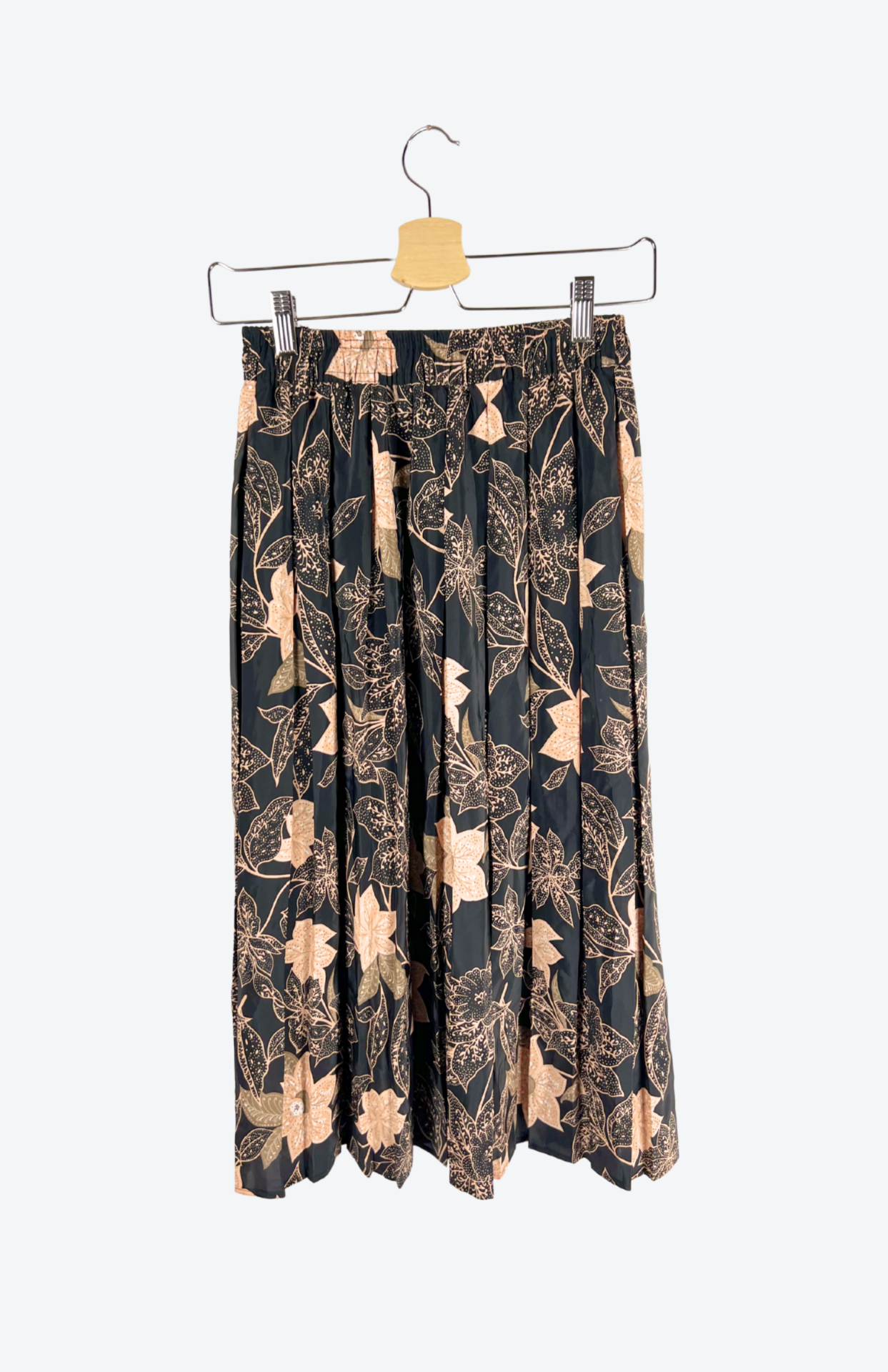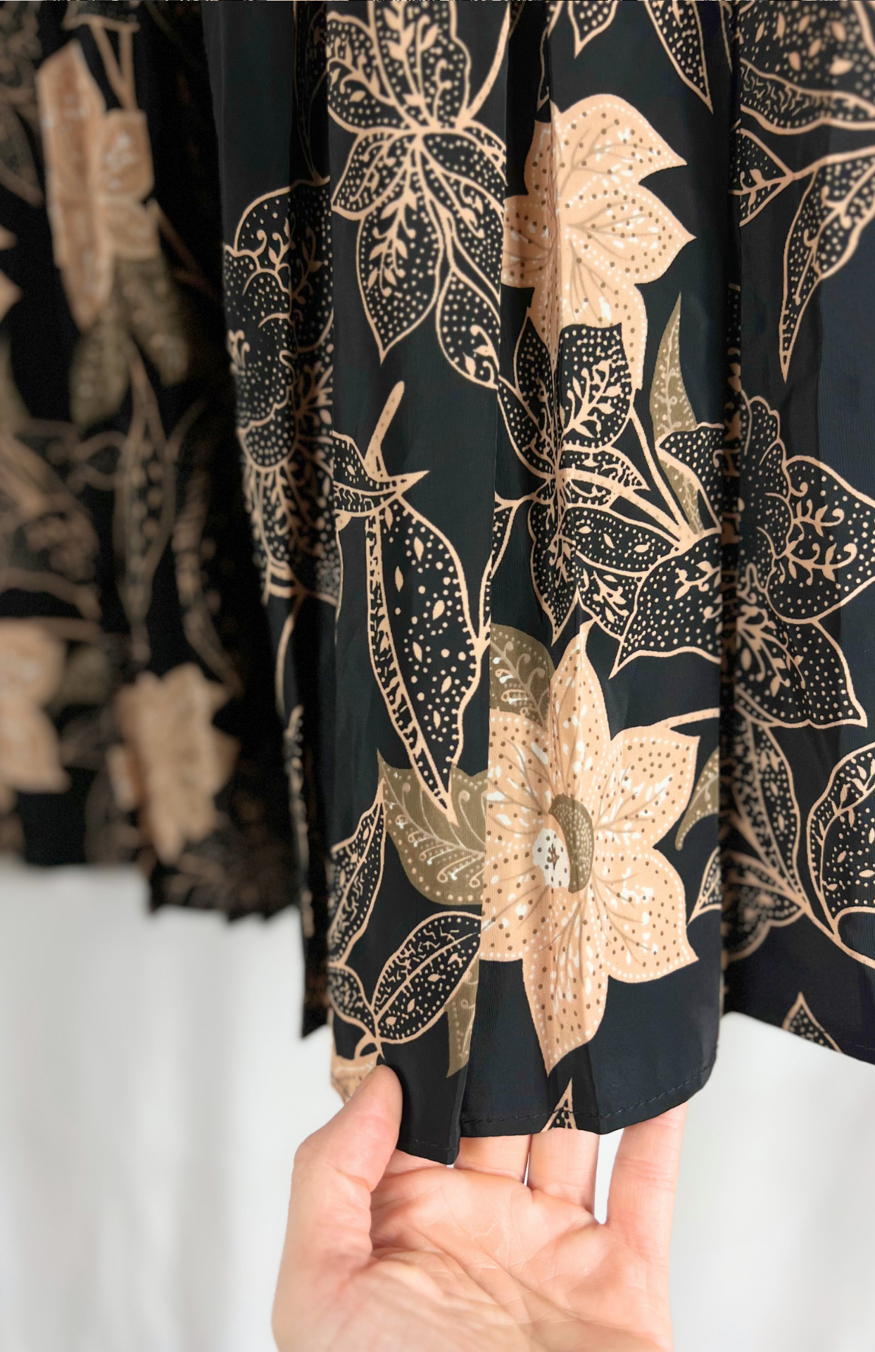 Originální 80´s sukně s květinovým vzorem. Má pružný pas, plisování po celé délce a nemačkavý materiál.