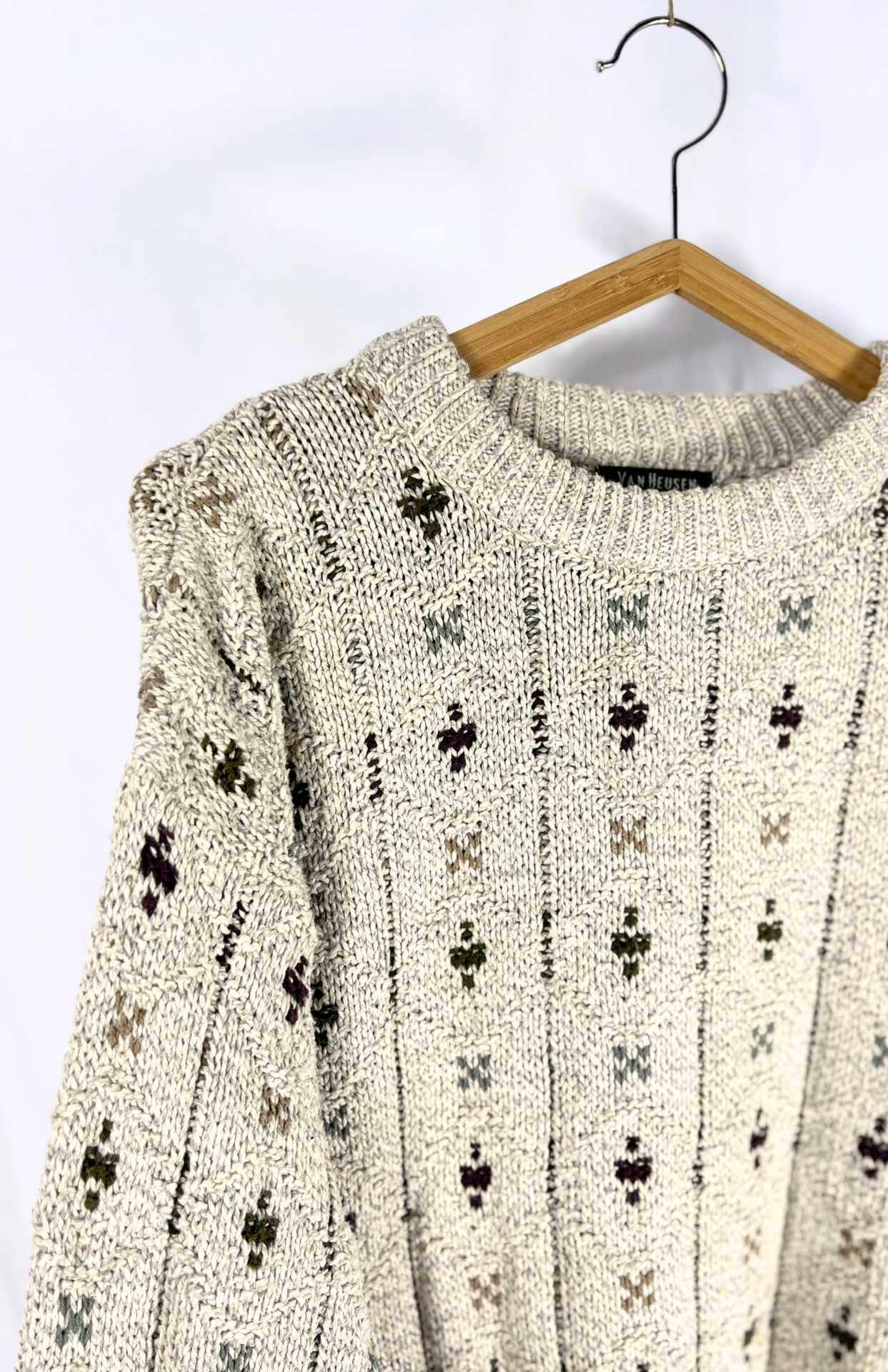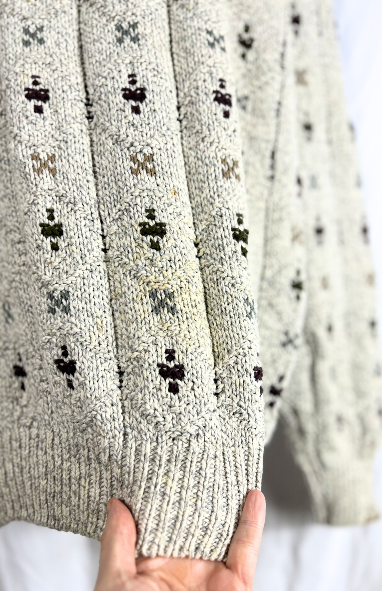 Vintage šedý svetr se vzorem. Hutný bavlněný úplet. Unisex kousek.