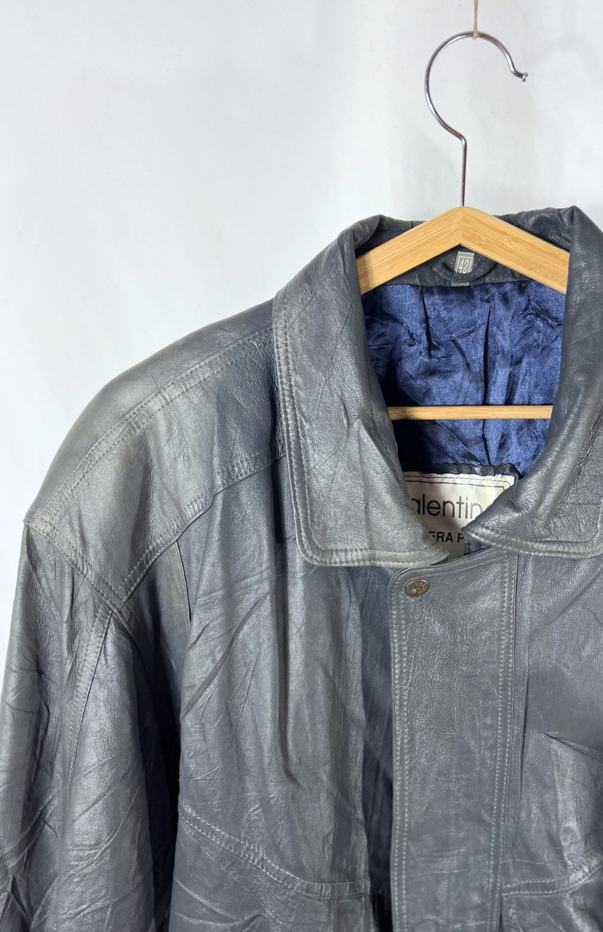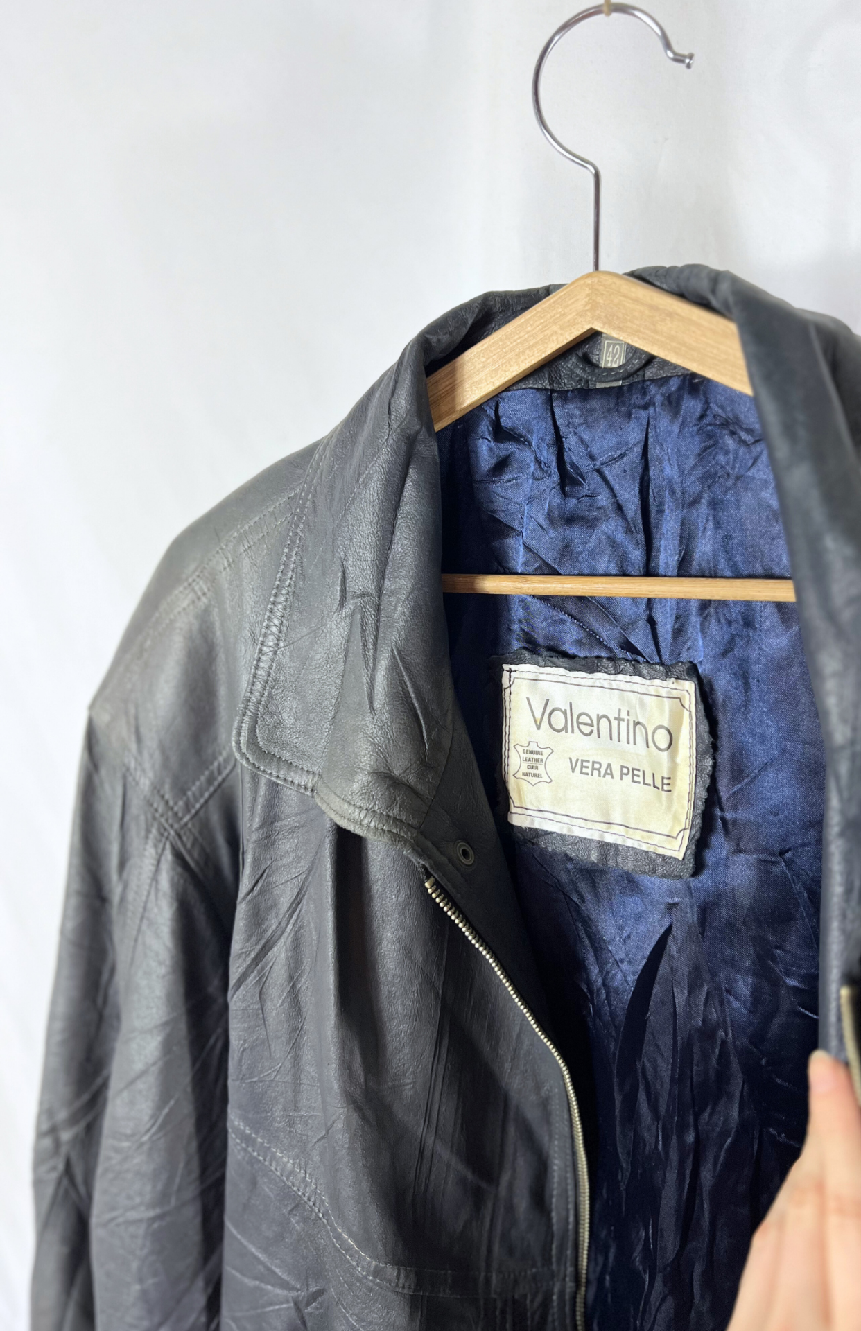 Lehká tmavomodrá kožená bunda. Bomber střih a drobný límeček. Dámská 42 / 80´s unisex, oversize kousek.