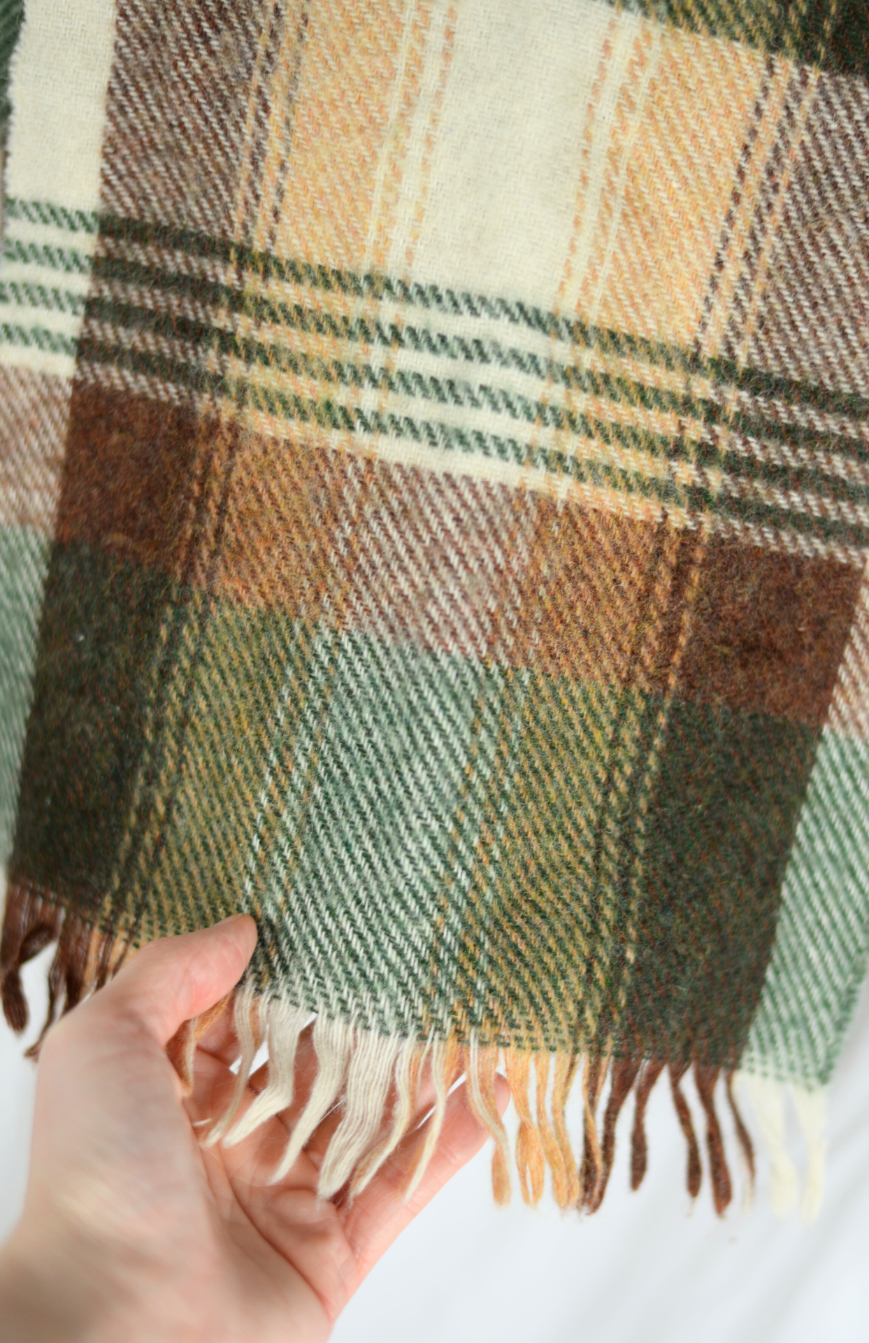 Vlněná šála se zelenou kostkou. Příjemný teplý úplet.