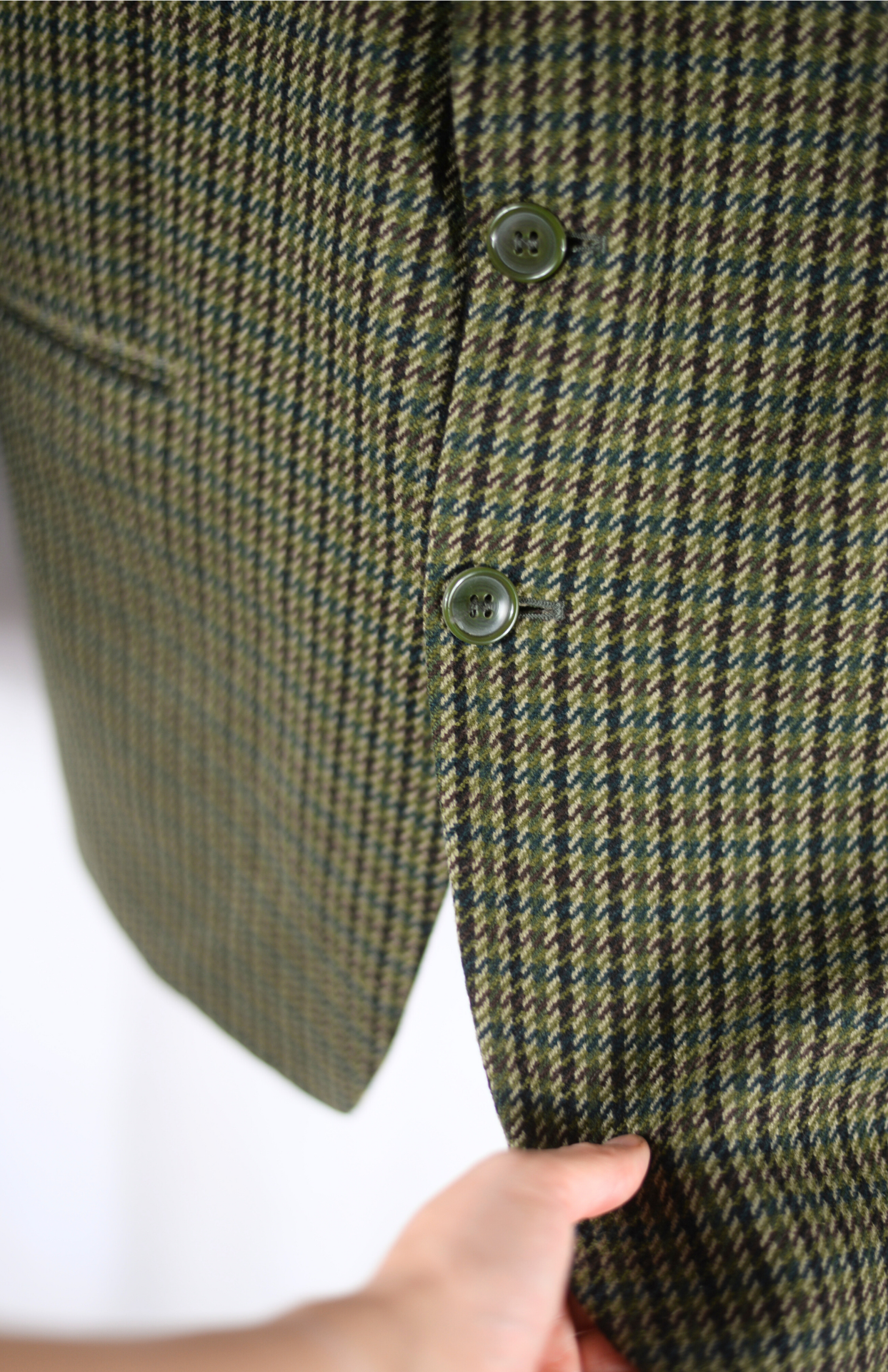 Čistě vlněné vintage zelené sáčko s pepitovou kostkou M/L