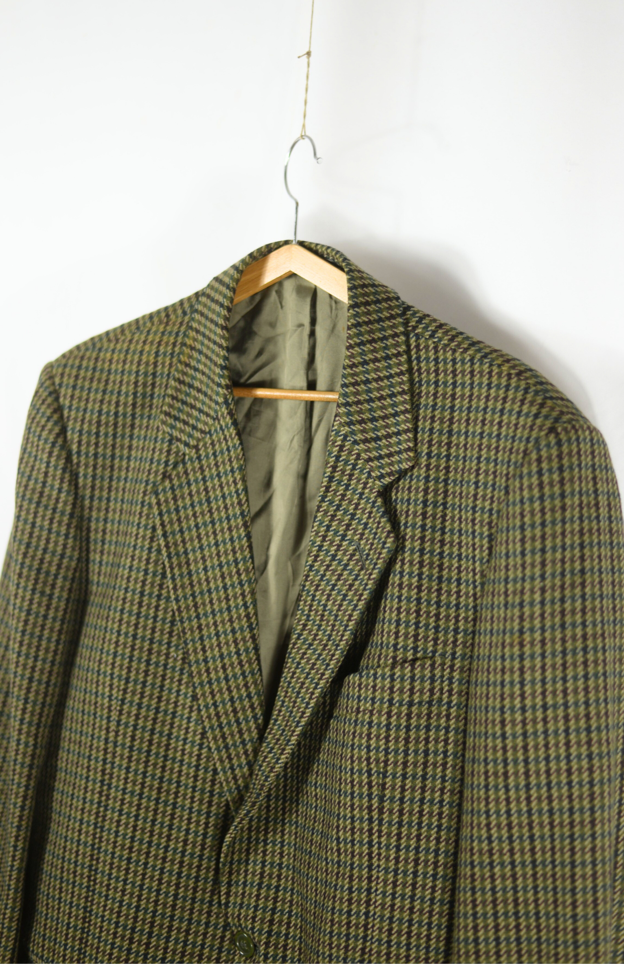 Čistě vlněné,vzorované vintage sáčko. Kvalitní klasický kousek. Má pěknou klopu, kapsy na bocích i uvnitř. Velmi pěkně zpracované. Pánské / oversize unisex.