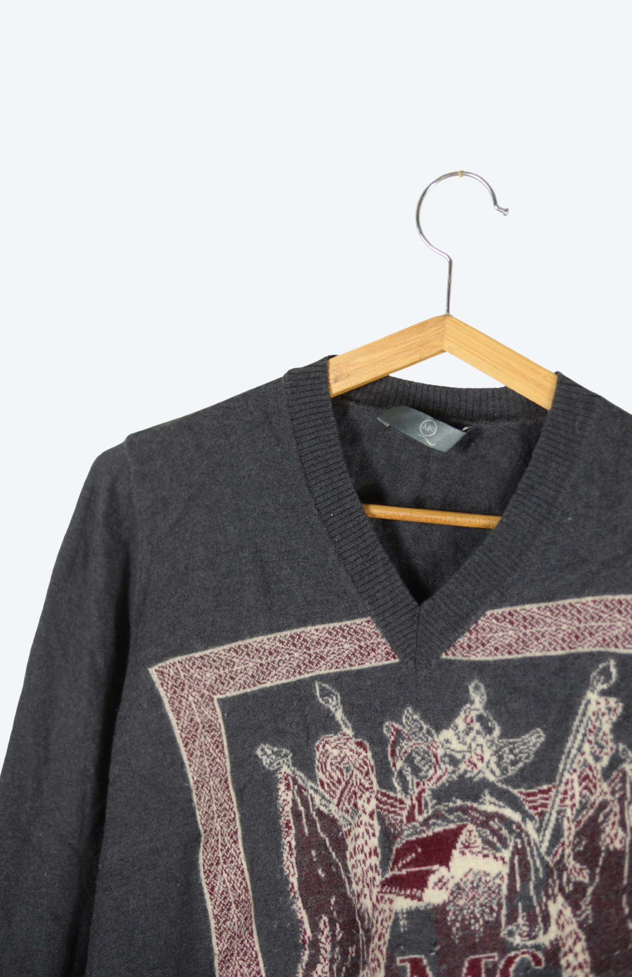 Čistě vlněný, tenký svetr s funky šikmým, ornametnálním potiskem.