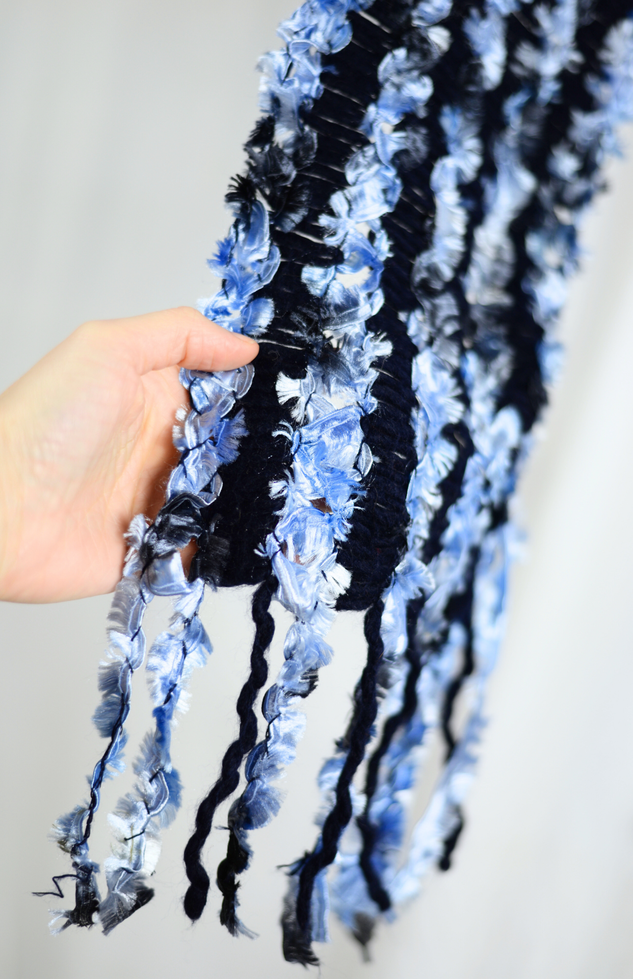 Retro střapatá šála ve stylu barevného boa. Originální kousek, který vystřelí i obyčejný outfit do 90´s nebe.