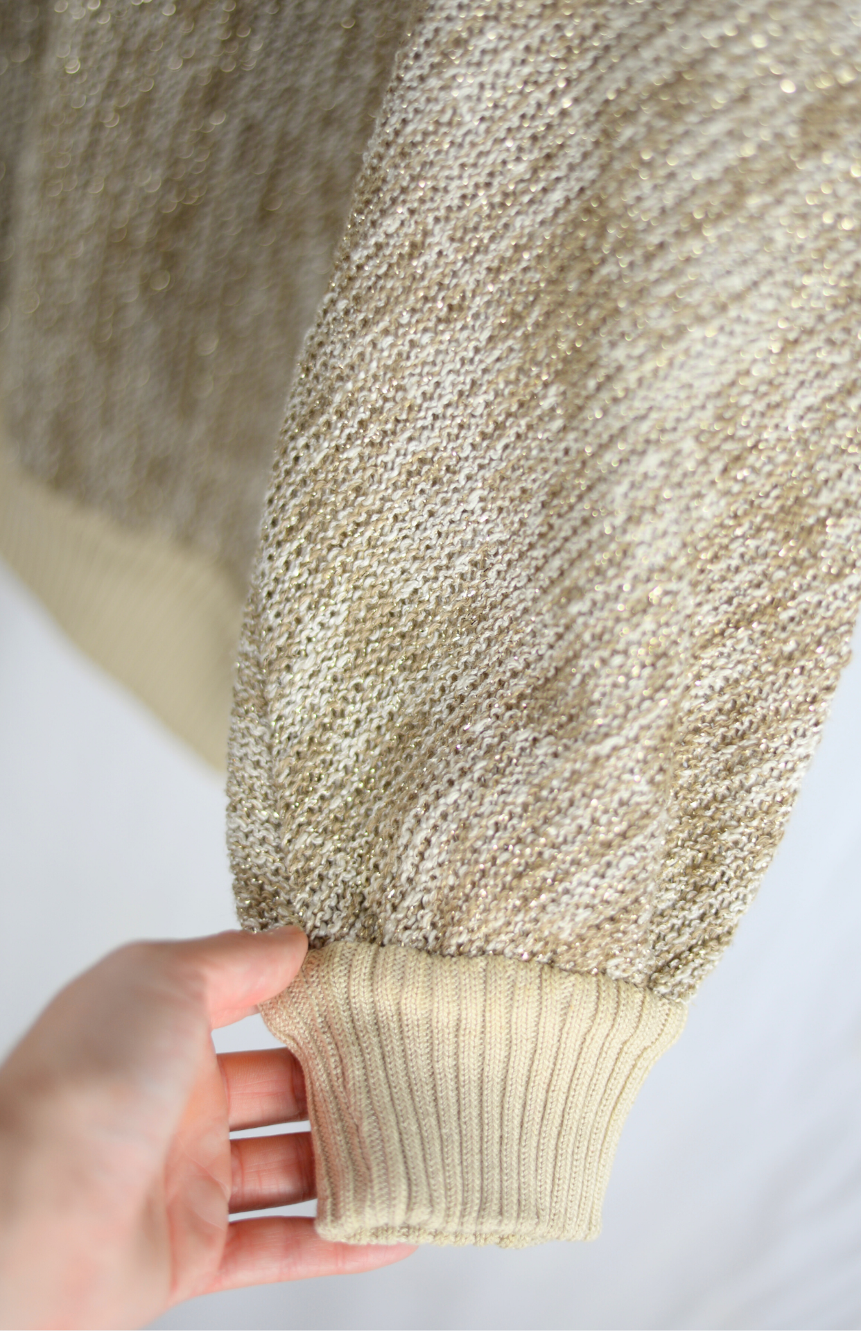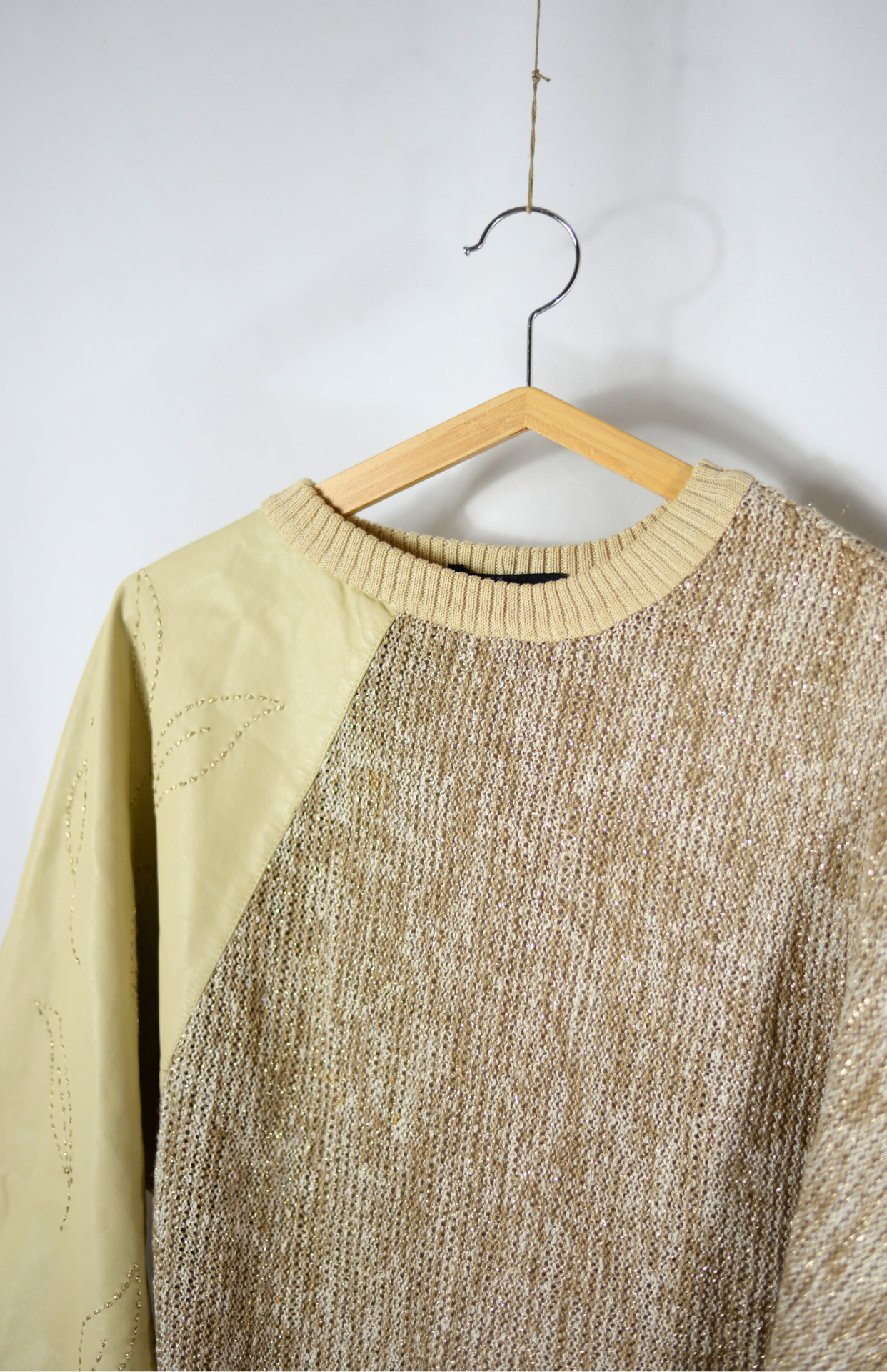 Zlatavý třpytivý svetr s koženými rukávem M/L