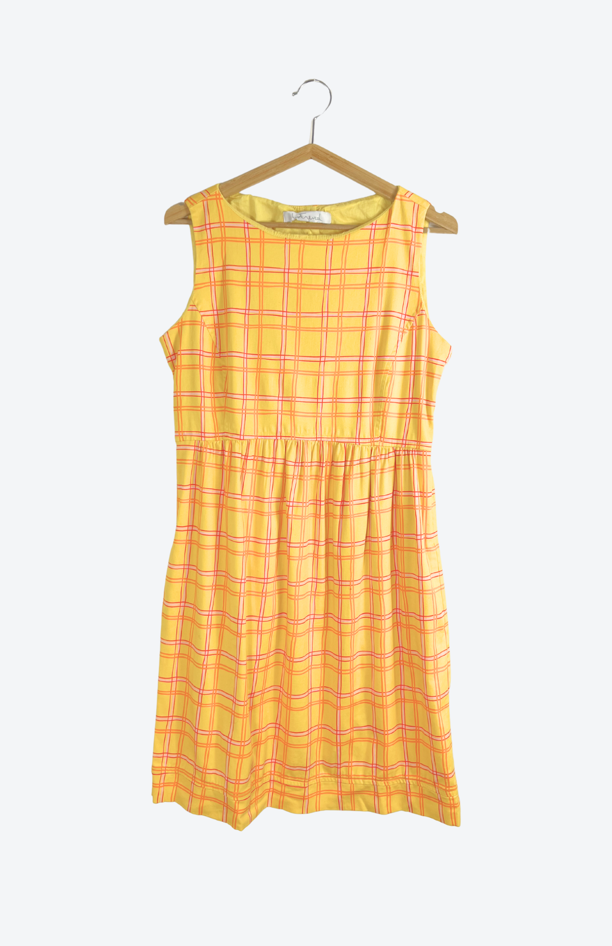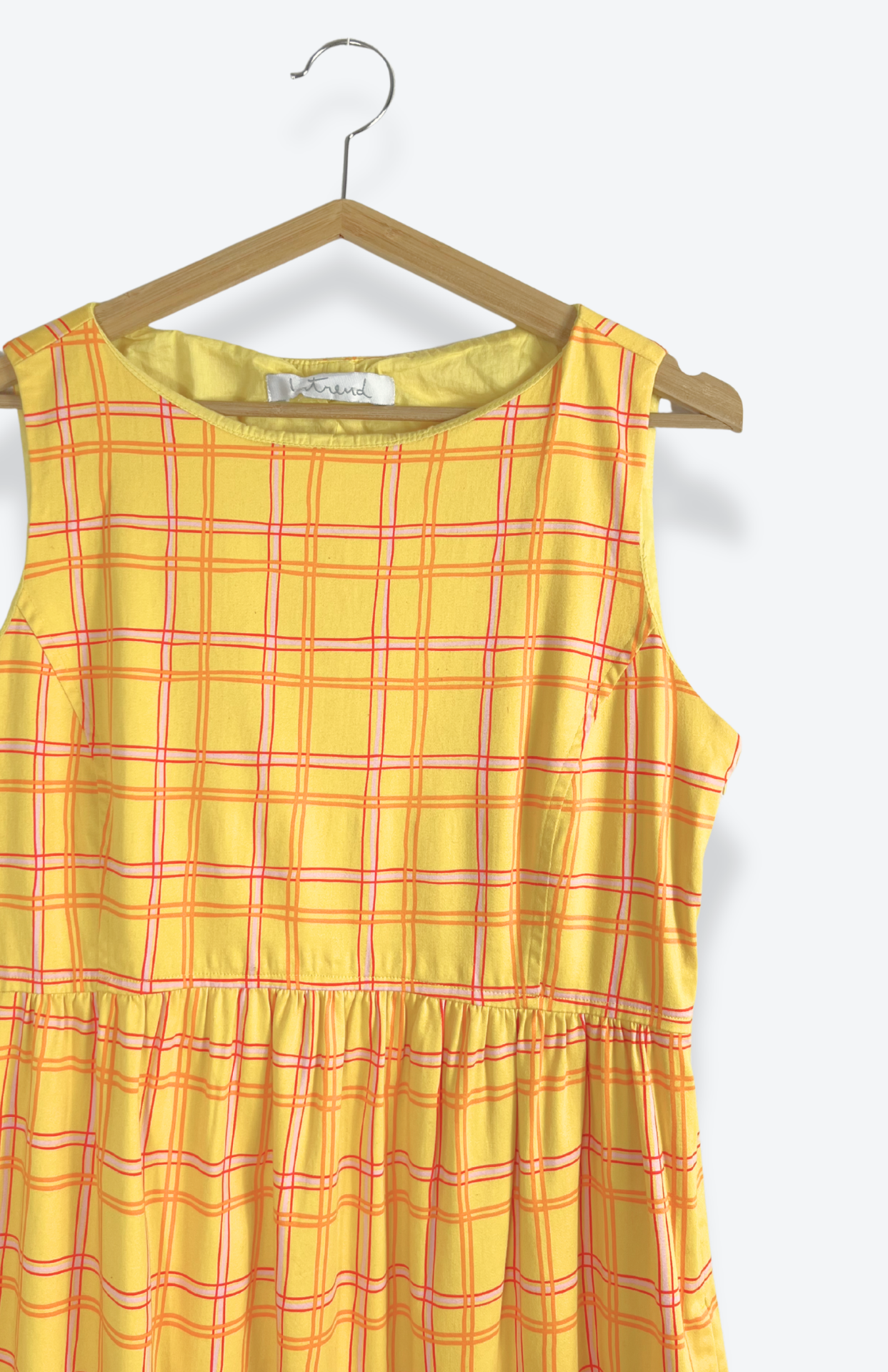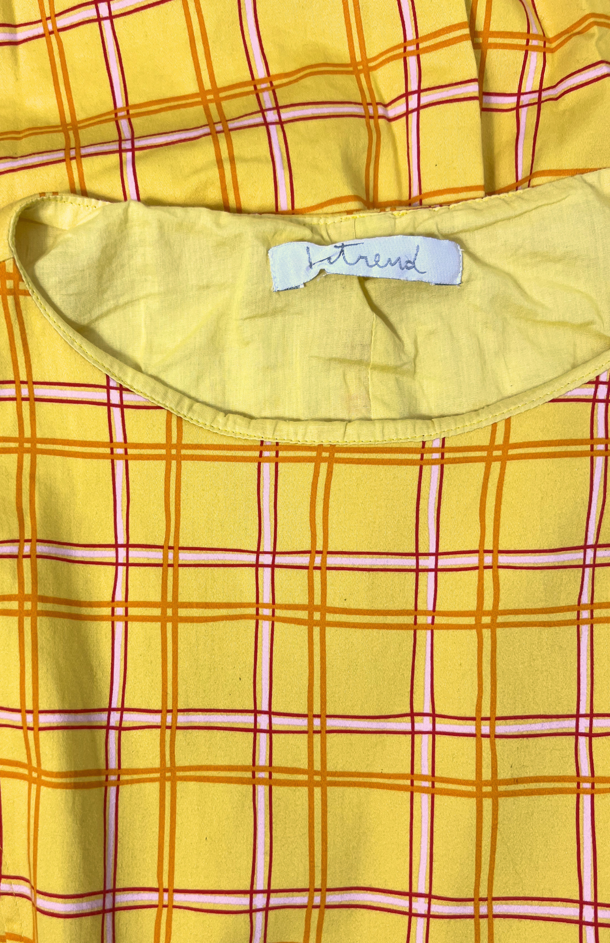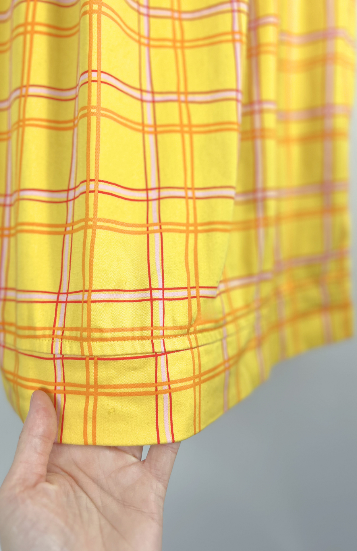 Žluté retro šaty s barevnou kostkou. Mají kapsy na bocích. Příjemný materiál vyšší gramáže, pěkně zpracované.